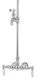 Handle:Plain Porcelain Lever Handles, Finish:Chrome Tub Filler & Shower System Tub wall mount only 3 3/8' Centers ' Turn washerless cartridges Code approved spout Optional 48' ceiling support available Requires showerhead Requires single or double offset supplies Ceiling & wall supports must be used on enclosure to prevent swinging. Not for use with acrylic legtubs or ECFSS freestanding supplies.Read More Details