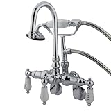 Kingston Brass CC304T1 Vintage Clawfoot Faucet Hi-Rise Spt Wall Mount H&C Porcelain Lever Handle, Polished Chrome Kingston Brass CC304T1 Vintage Wall Mount High-Rise Spout Leg Tub Filler with Hand Shower, 3-3/8" - 9" Adjustable Spread, Chrome For vintage styling and design for a lifetime of durable performance. Premium material construction and an extensive selection of scratch-, corrosion- and tarnish-resistant color finishes offer durability and years of beauty. Kingston Brass CC304T1 Vintage Wall Mount High-Rise Spout Leg Tub Filler with Hand Shower, 3-3/8" - 9" Adjustable Spread, Chrome Features: Brass Construction H&C Porcelain Lever Handle Chrome Finish 3-3/8 ï - 9 ï Adjustable Spread 2.4 GPM (9 LPM) Max @ 60 PSI Tub-Wall Mount Clawfoot Tub Filler 1/4 Turn Ceramic Disk Cartridge 8-3/4â Spout Reach 3-3/8" - 9" Spread